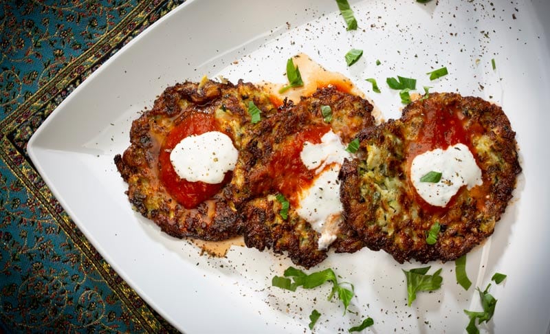 Shredded zucchinis, parsley, onion, feta cheese & eggs