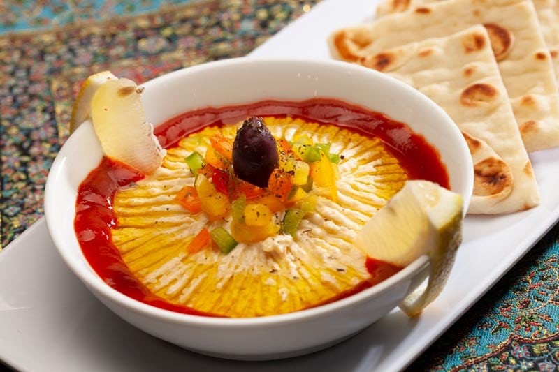 Chickpeas blended with lemon juice, olive oil, tahini, & a touch of garlic